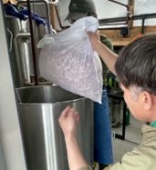 カスタードクリームも入って、ほんのり甘いデザートビールですがシュークリームとビールの組み合わせには、興味を持って頂く方も多く、「えっ!?」と驚いて、「へぇ~」と感心、「おもしろい!」と言って頂ける、グリーン・エコならではのアップサイクルに、たくさんの方が足をとめて下さいました。